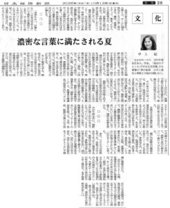 【10/15毎日新聞(夕)文化面《全国版》】詩人・蜂飼耳さんが、都圭晴さん<この9月まで7年半文校に在籍>の第一詩集『ひかりさくかえりみち』(七月堂)を大きく取り上げる。