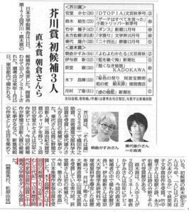 2014年下半期『宇喜多の捨て嫁』(文藝春秋)、2017年上半期『敵の名は、宮本武蔵』(KADOKAWA)、2018年上半期『宇喜多の楽土』(文藝春秋)に次いで、自身4度目のノミネートであり、今度こそは、と期待が高まります。