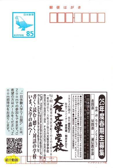 ★下のハガキをお読みください。大阪文学学校のことを簡潔にまとめてあります★
