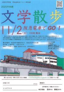 【大阪文学学校学生委員会より】・・・◆10/20(月)午後7時~第1回学生委員会にどなたでも。◆11/2(日)午後1時~新入生歓迎・文学散歩[阪急電車でGO!宝塚へ]の申込を急いでください。