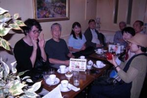 【ゼミ終了後、〔コーヒー&ケーキの店・ティファニー〕での津木林クラスの面々。津木林チューターは、左から2人目】