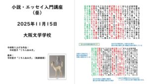 ●11/17(月)午後6時30分からも公開講座があります。作品提出+聴講で1000円いただきます。