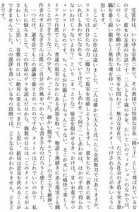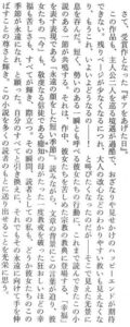 ●小説すばる新人賞の選考委員は、五木寛之・北方謙三・辻村深月・宮部みゆき・村山由佳(五十音順)の五氏です。五氏それぞれが最終候補作3作について書かれた《選評》のうち、「ギアをあげた日」の箇所のみ、次に抜粋します。