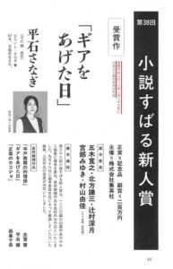 【『小説すばる』12月号】平石さなぎさん(文校修了生)の小説すばる新人賞受賞作「ギアをあげた日」への選考委員五氏の《選評》と受賞作の《抄録・29頁》★久野庭子さん(昼間部生)の3次通過作品への“アドバイス”も併載