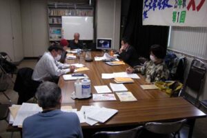 《佐伯敏光・昼間部チューターを中心にした合評会風景(教室5名+Zoom4名)》