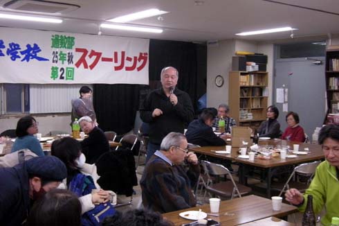 ◆専科および研究科の担当チューター4名による簡単な自己紹介のあと、13時30分から、8会場(文校2、公共施設6)に分かれてクラスごとに『樹林』2・3月合併号(通教部作品集)の合評会がおこなわれました。